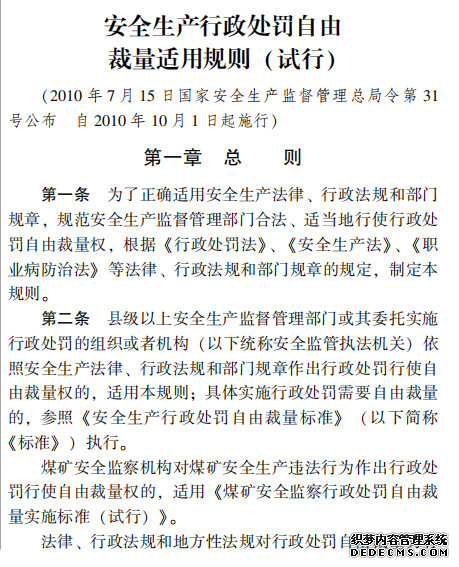 安全生產行政處罰自由 裁量適用規則 (試行)