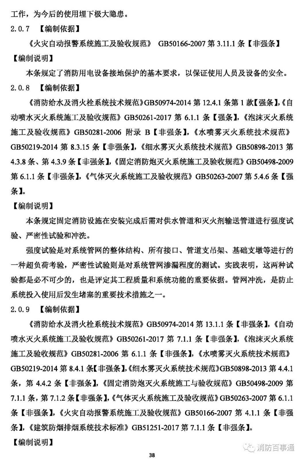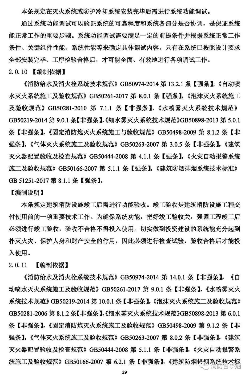 2.0.10 建筑消防設施的安裝工程竣工后,應進行相應的工程質量和消防設施功能驗收;驗收結果應有明確的合格與不合格的結論,驗收不合格不得投入使用。