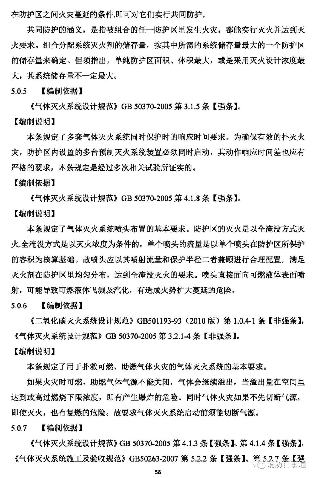 5.0.4 一個組合分配氣體滅火系統保護的防護區數量不應大于 8 個,滅火劑的儲存量不應小于這些防護區中所需儲存量最大者。