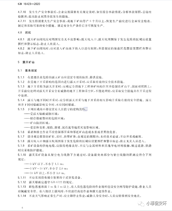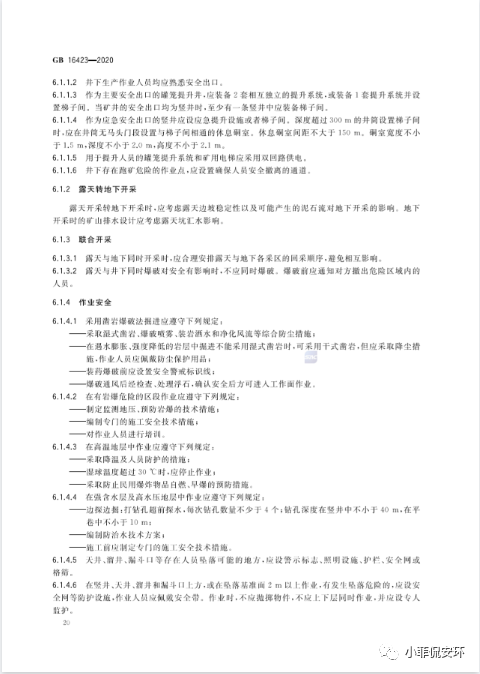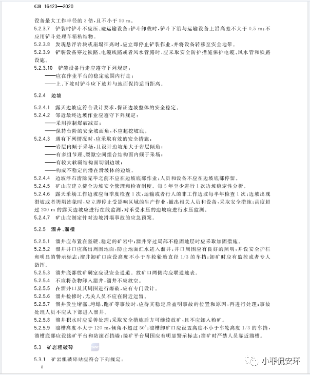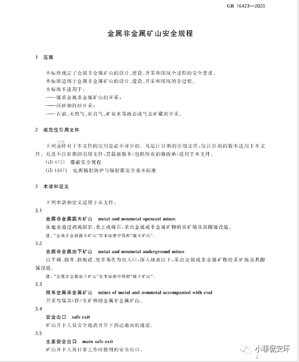 GB16423-2020《金屬非金屬礦山安全規(guī)程》,2021年9月1日起實施!