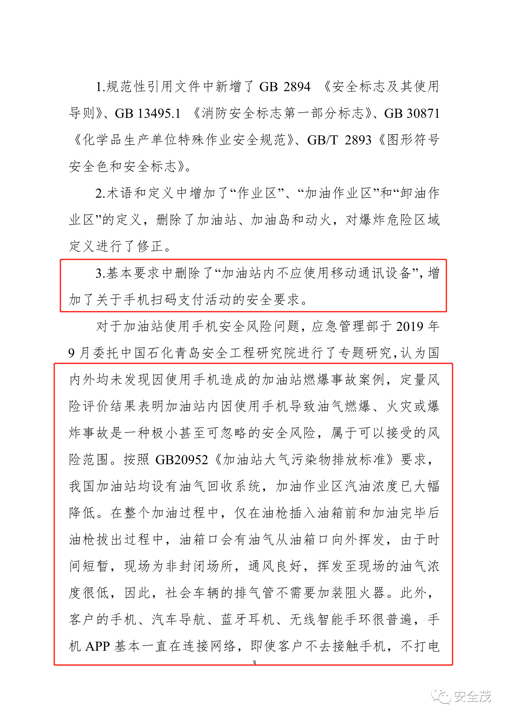 1、刪除了“加油站內不應使用移動通訊設備”的要求。