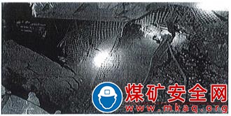 中間巷底板高出工作面刮板輸送機刮板槽1.2m左右。中間巷以里5m處砰石垛接頂未坍塌,砰石垛高2m、寬2m、長5m,右側距幫約有0.5m空間。中間巷巷口有錨桿、鋼帶等支護材料,裸露兩根錨桿有摩擦磨損及切割斷裂痕跡(見圖3)。
