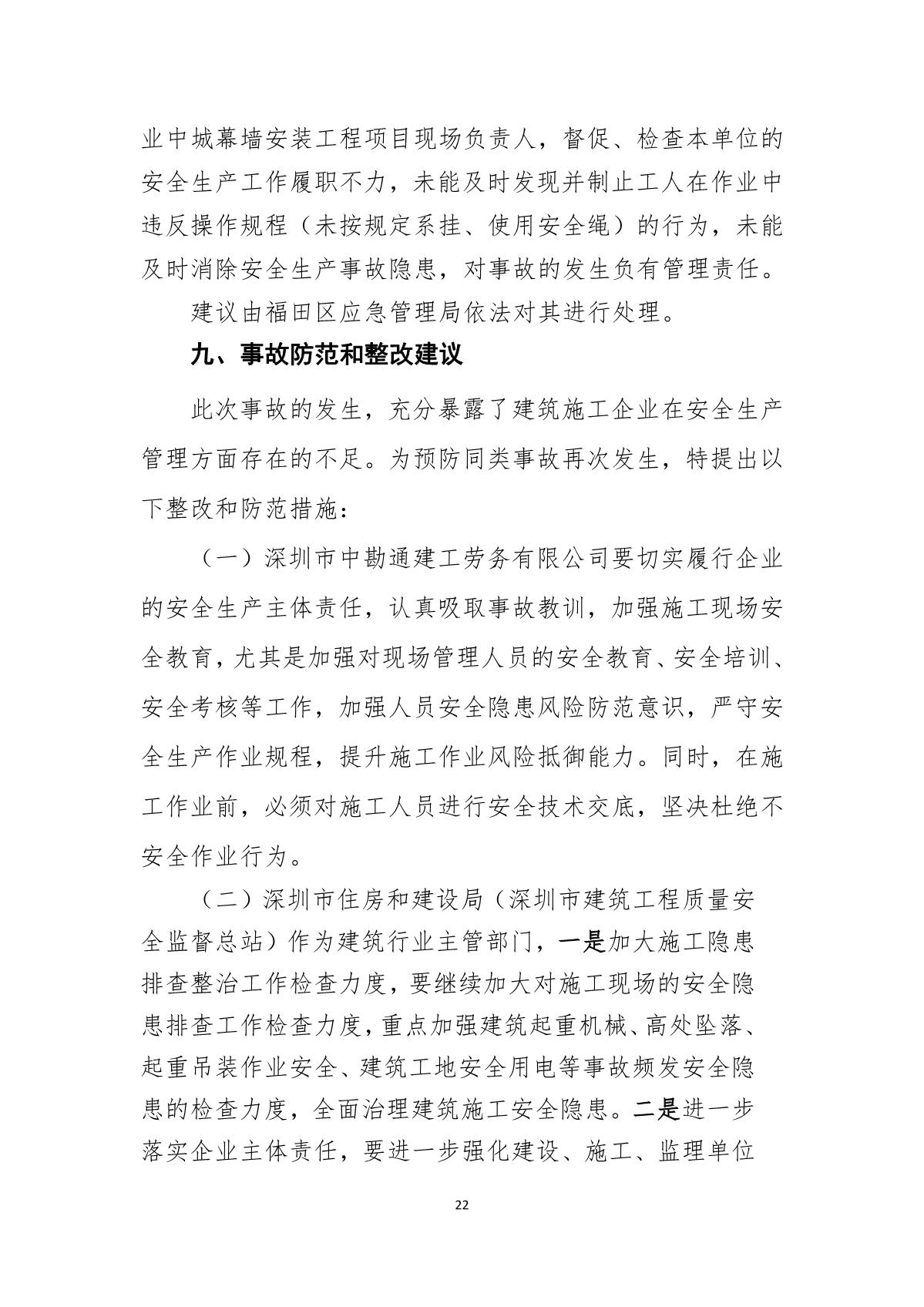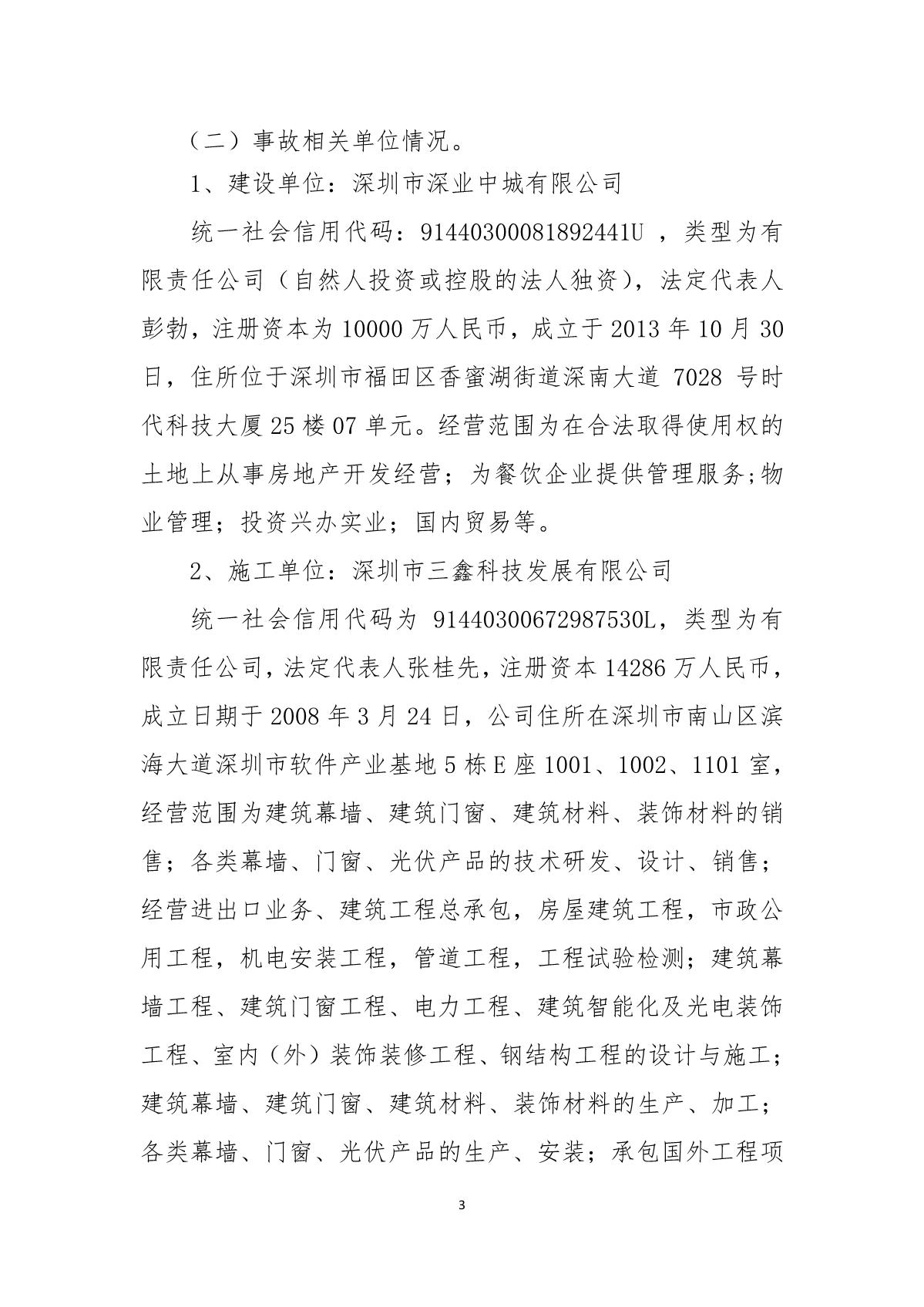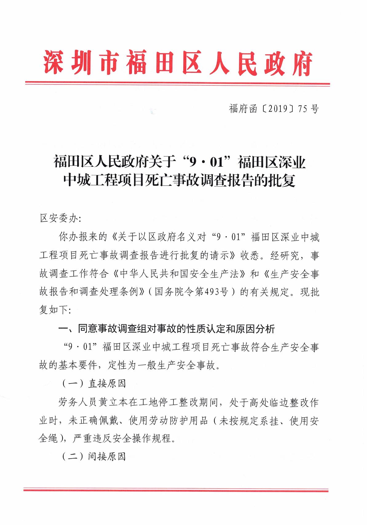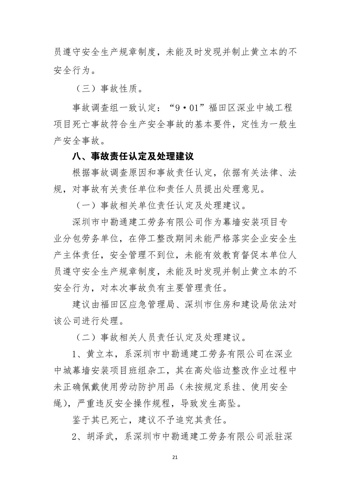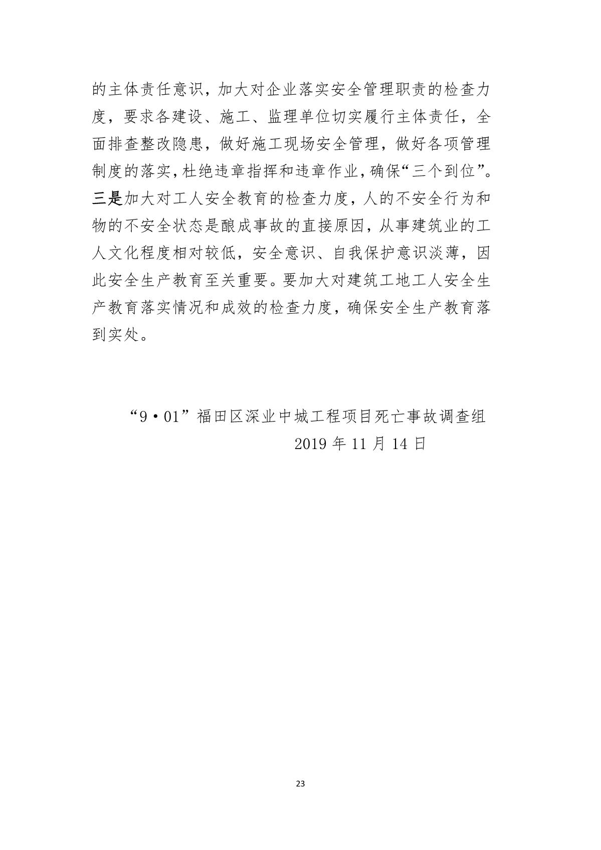 “9.01”福田區深業中城工程項目死亡事故調查報告