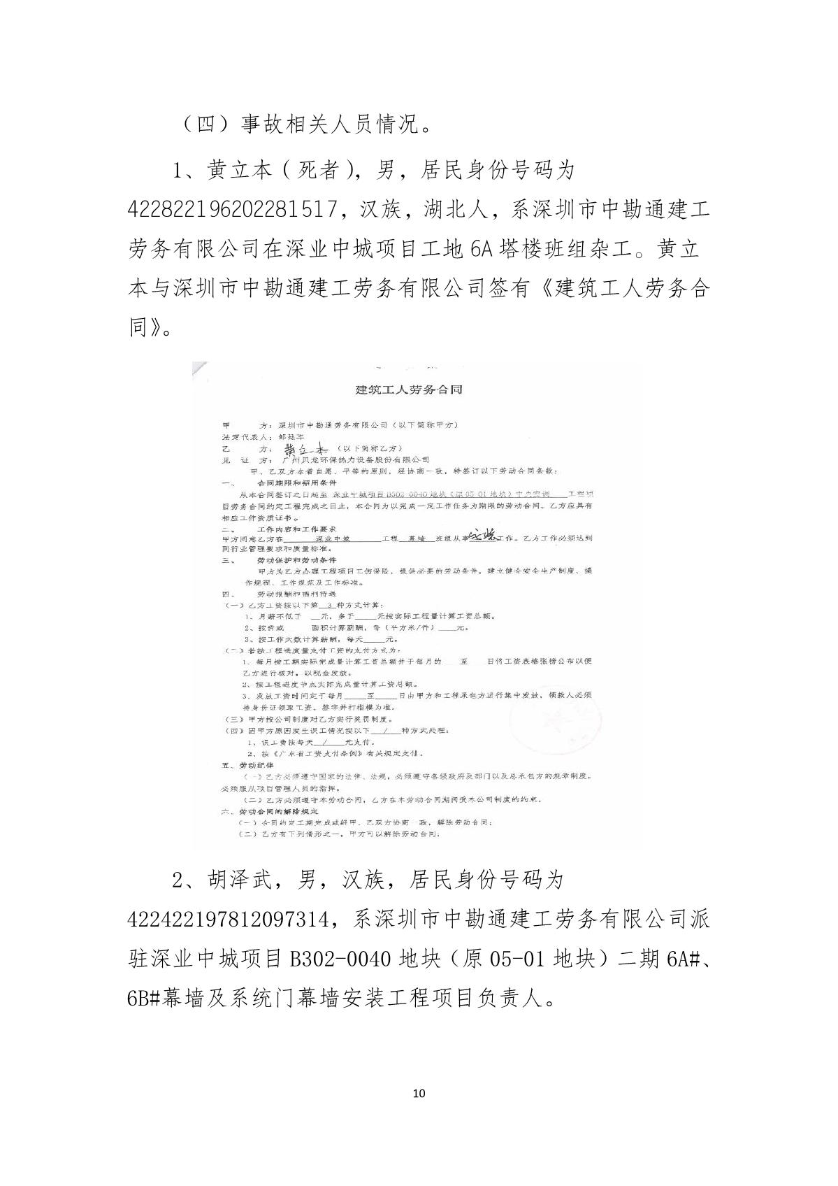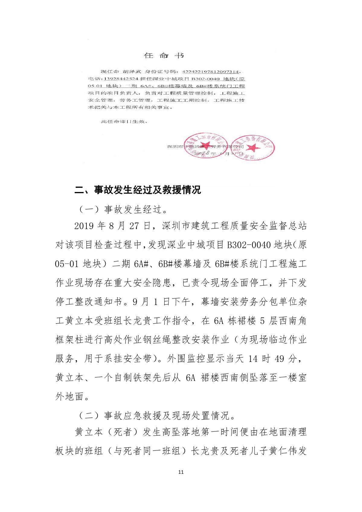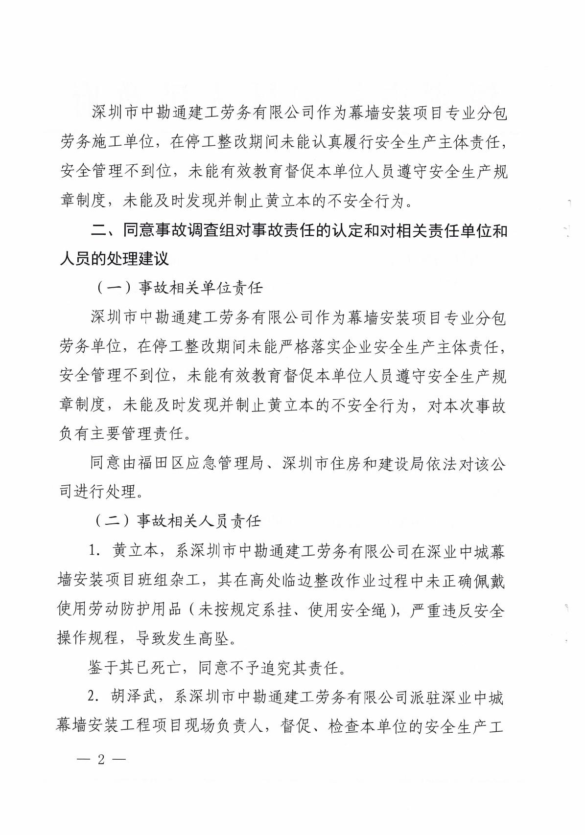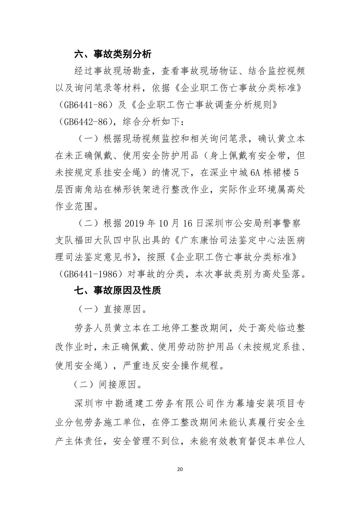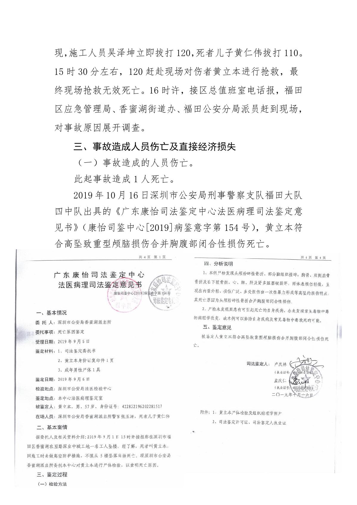“9.01”福田區深業中城工程項目死亡事故調查報告