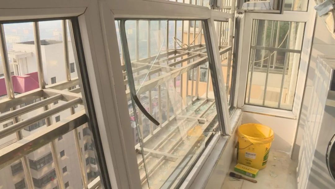 這是贊皇縣翰林官邸小區11號樓前監控視頻拍攝的畫面。從監控上看,樓上住戶玻璃破損有大量碎玻璃掉落到樓下。記者了解到這些碎玻璃是從這棟樓21層一戶掉落下來的。之后,記者來到這家住戶屋內。