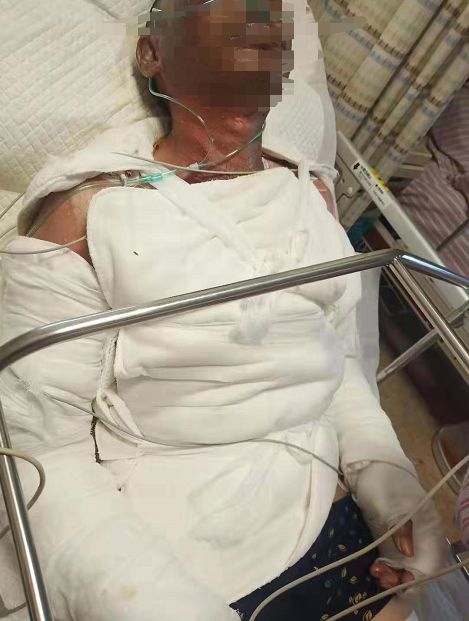 事故發(fā)生后,老吳被緊急送往醫(yī)院接受治療,醫(yī)生確認老吳全身多處燒傷,面部尤其嚴重,部分皮膚甚至呈焦黑色。
