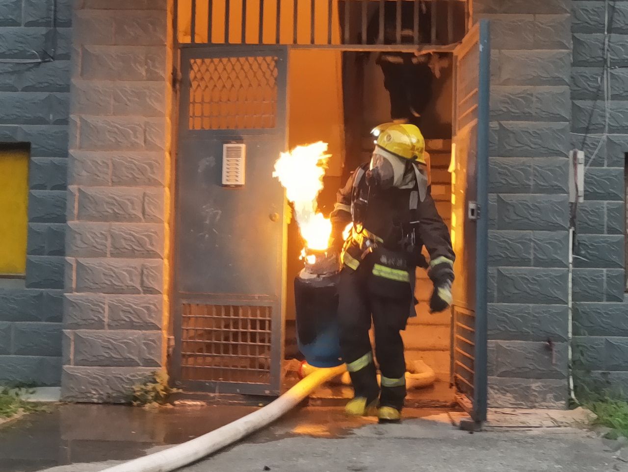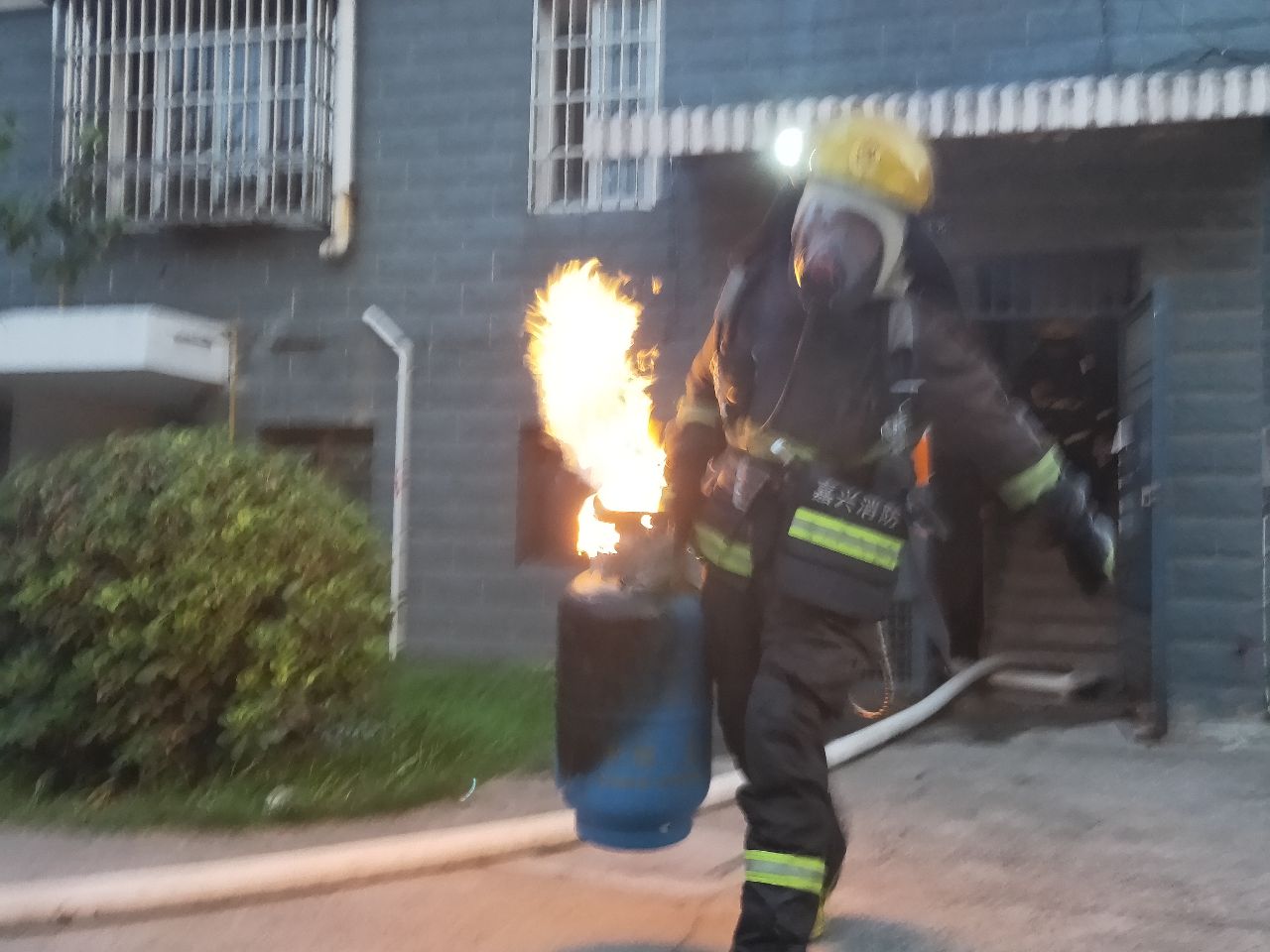 到達現場消防指戰員發現,著火處物為煤氣罐,該煤氣罐位于居民房內廚房里,處于猛烈燃燒階段,隨時都有爆炸的可能,而且居民樓樓下都住有居民,一旦發生爆炸,后果不堪設想。