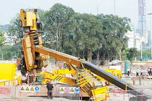 吊挖機時發生傾覆事故