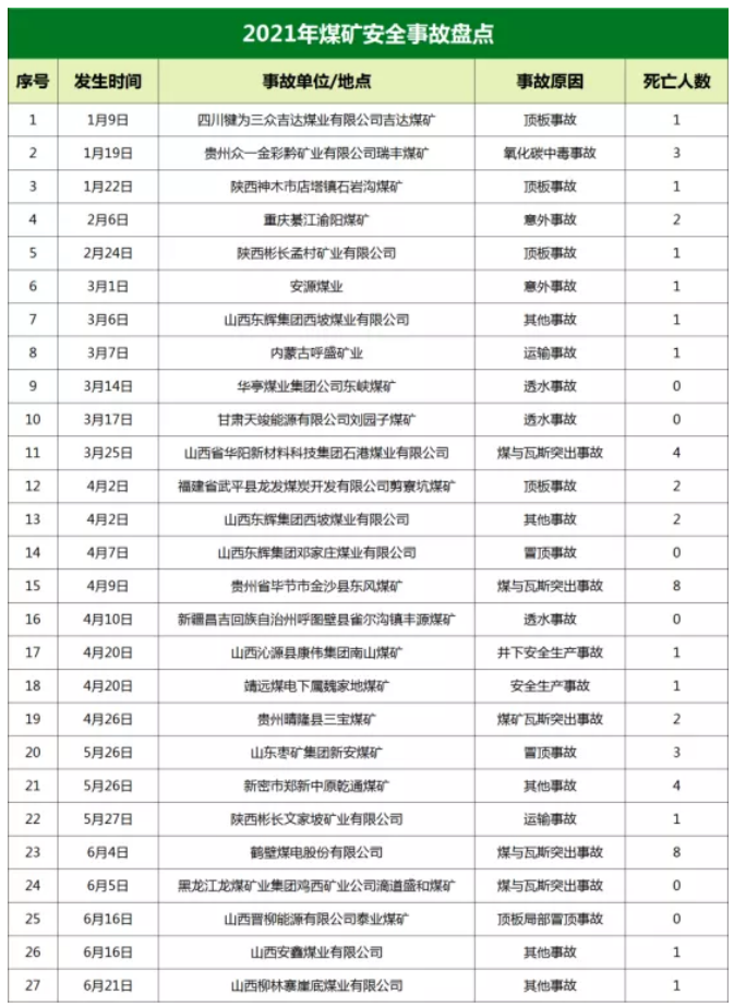 隨著國家政府的重拳出擊,煤礦安全問題取得了不錯(cuò)的成績,國際能源網(wǎng)記者從2021年1月8日召開的全國礦山安全生產(chǎn)工作會(huì)議上獲悉,2020年共發(fā)生煤礦事故 122起、死亡225人,同比下降28.2%和28.8%;全年未發(fā)生重特大瓦斯事故,是新中國成立以來首次。據(jù)統(tǒng)計(jì),2021年以來,我國共發(fā)生煤礦事故27起、死亡49人。其中,山西省作為產(chǎn)煤大省,也成為了煤礦事故的重災(zāi)區(qū)。截至目前,山西省已發(fā)生8起煤礦事故。雖然煤礦事故總體數(shù)量在減少,但從能源全行業(yè)看,它依舊是事故高發(fā)的重災(zāi)區(qū)。少報(bào)、瞞報(bào)煤礦事故的情況時(shí)有發(fā)生。