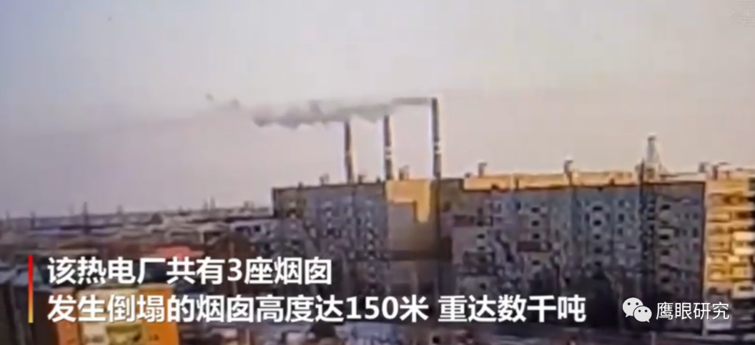 哈薩克斯坦熱電廠煙囪因大風倒塌