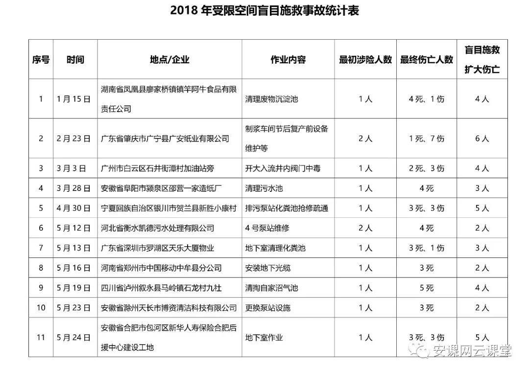 2018年受限空間盲目施救事故統計