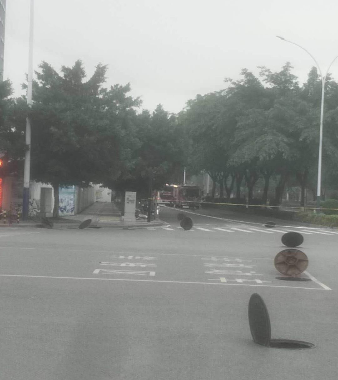 所有井蓋都立了起來,網友推測可能是在“通氣”