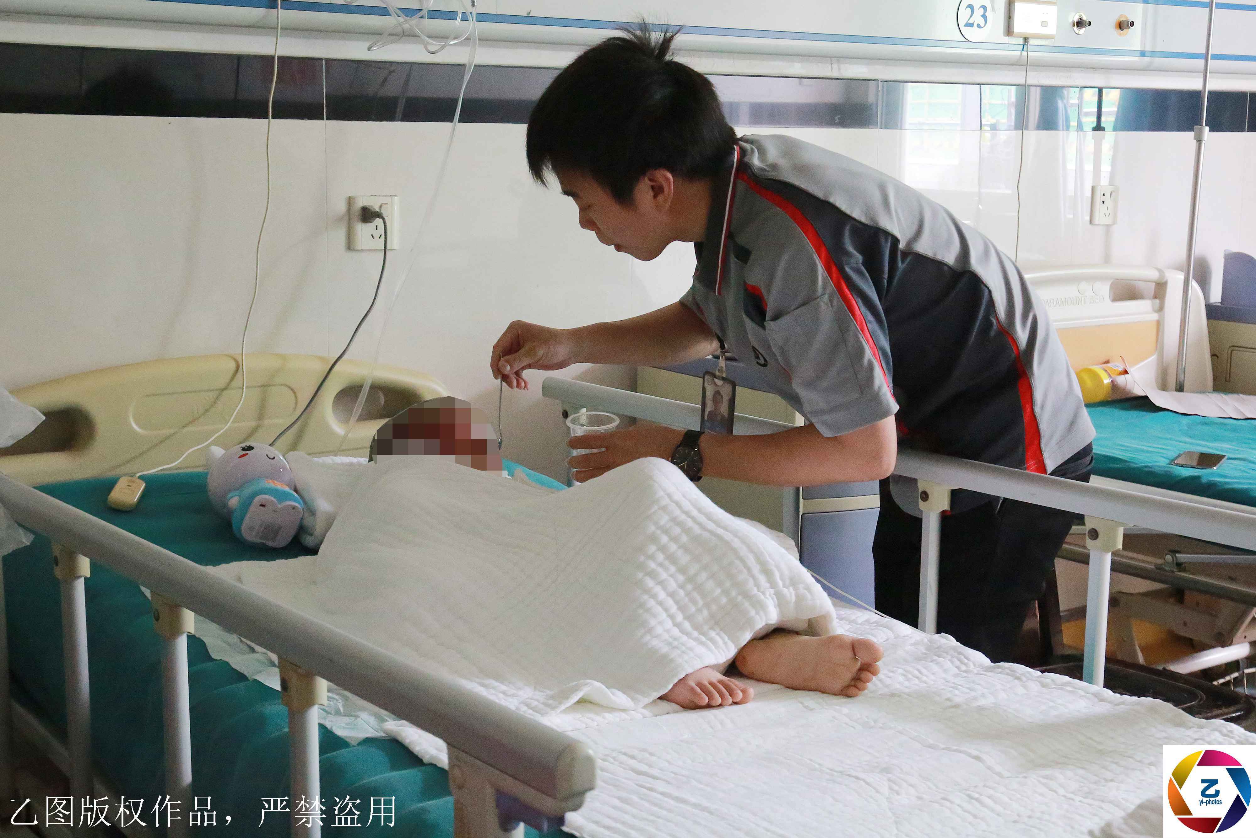 事發(fā)后,黎明將哥哥和侄兒的骨灰送回老家安葬,當(dāng)他處理完后事回到醫(yī)院時(shí),醫(yī)院里再也沒有看到小俊逸母親李喜利的身影。他曾聯(lián)系了警方幫忙查找孩子的母親,希望她能夠回來照顧孩子,但是最終還是沒有結(jié)果。黎明想不明白,夫妻兩個(gè)離婚,孩子是無辜的,現(xiàn)在哥哥和大侄兒沒了,孩子母親也消失了,就小俊逸一個(gè)人孤單地躺在醫(yī)院里。圖為叔叔黎明在給小俊逸喂吃的。