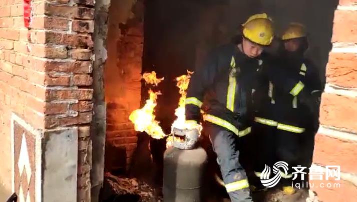 29秒|民房遇火災(zāi)房頂坍塌 消防員“淡定”拎出噴火煤氣罐
