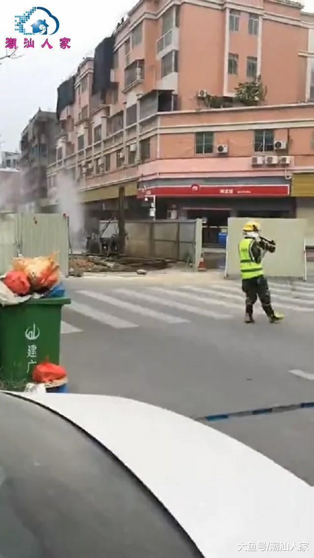 潮州發(fā)生一起天然氣管道泄漏事故, 現(xiàn)場拉起警戒線和疏散人群