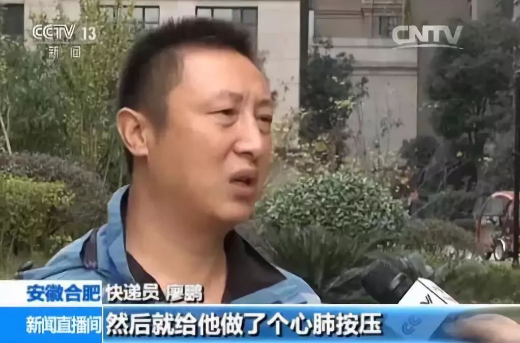 而此時(shí),快遞小哥廖鵬正巧到16樓送快遞,發(fā)現(xiàn)了暈倒在樓道內(nèi)的李兵。于是,他立即為傷者做了急救措施,并將傷者背下了16樓。