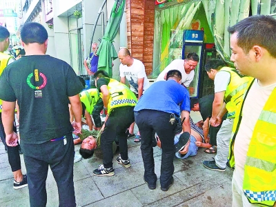 “趕緊找人幫忙!”佘師傅趕緊跑到不遠的路口,找到一輛正在執勤的城管巡邏車。沌陽街城管中隊隊員李享和肖瑤等人,得知情況趕緊通知附近的執勤隊員,一起跑到現場救人。