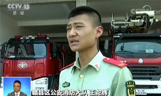 贛縣區公安消防大隊王龍輝:因為當時情況比較緊急,我也沒有想太多。第一反應就是想趕緊把液化氣罐抬出去,放到空曠的地方,避免因為濃度太高發生爆炸。