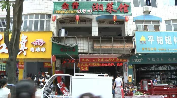 記者趕到這家餐廳時看到,現場已經拉起了警戒線,消防人員也已離開,派出所民警正在對過往行人進行疏導。事發餐廳位于人行道邊2樓的位置,沿街的玻璃已經全部震碎,并散落到人行道上,餐廳1樓電動車修理鋪的招牌也在事故中被震落。