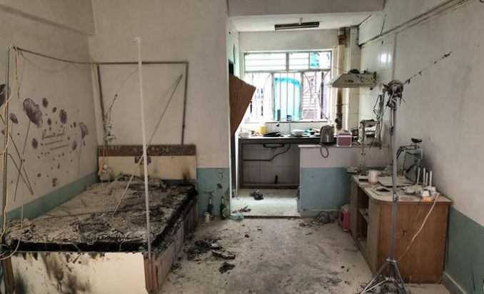 黃江鎮某小區一出租屋發生爆炸,屋內部分物件燃燒,巨大的氣流導致屋內一片狼藉。