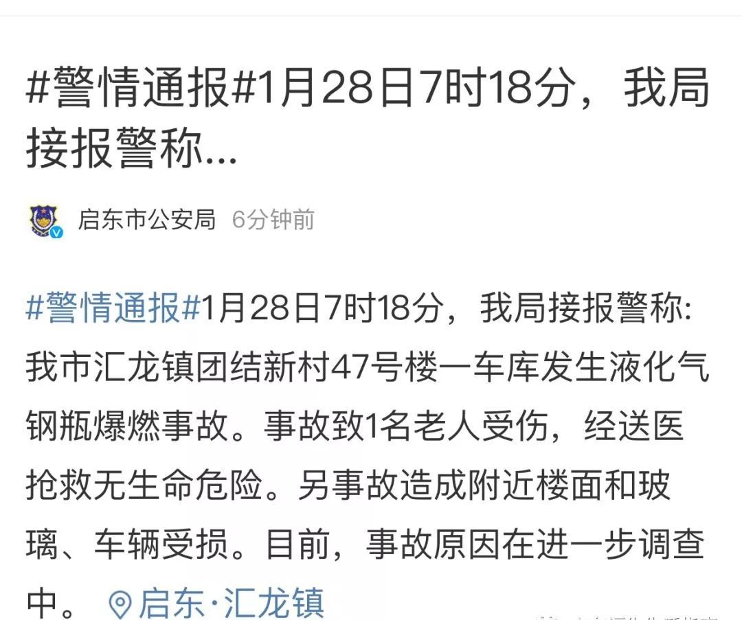 啟東團結新村一車庫發生鋼瓶爆燃事故 一老人受傷!
