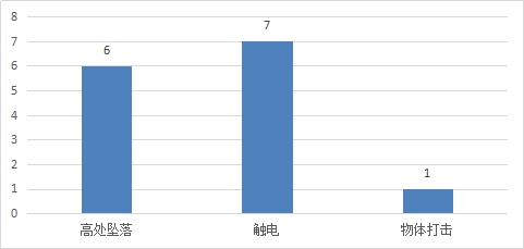 (四)按事故類別統(tǒng)計:三季度,高處墜落造成6人死亡,觸電造成7人死亡,物體打擊造成1人死亡。 電力人身傷亡事故不同類別死亡人數(shù)